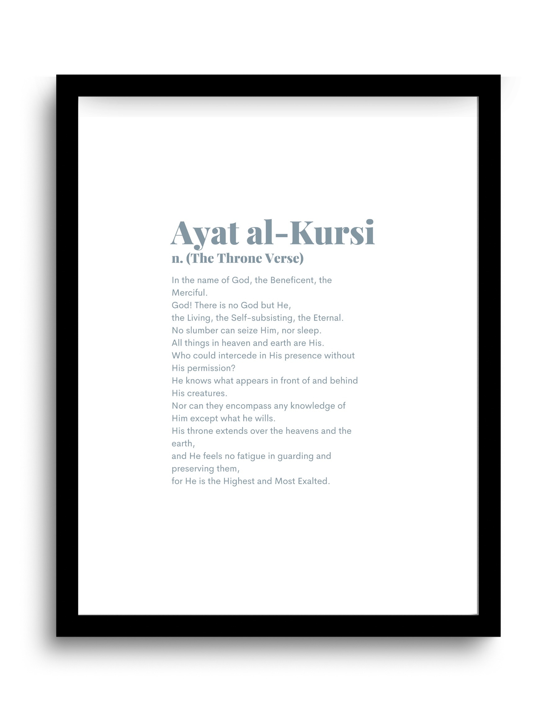 SAVIOR: Ayat Al Kursi, 246th verse of chapter 2 of the Quran, has been chosen to protect from forgetfulness of the Quran, said the prophet (pbuh) himself. Also narrated to be a source of protection for wealth, life, and calamities for any house whose walls adorn it. Relax, and live, worry free as you are protected by Ayat al kursi.